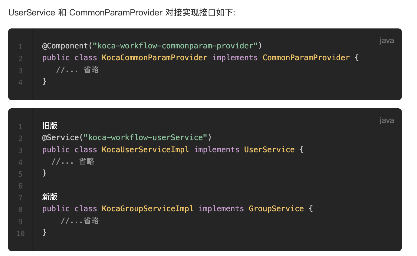 如果只引入koca-admin-workflow-boot-starter和koca-admin-user,则需要进行适配