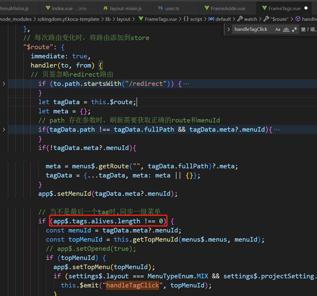 我的页面菜单都没有用缓存,基本都是加了keepAlive的属性,导致不能往app$.tags.alives追加 数组为空所以不能执行里面的逻辑。所以才会出现偶然性,当然这是我的猜想。